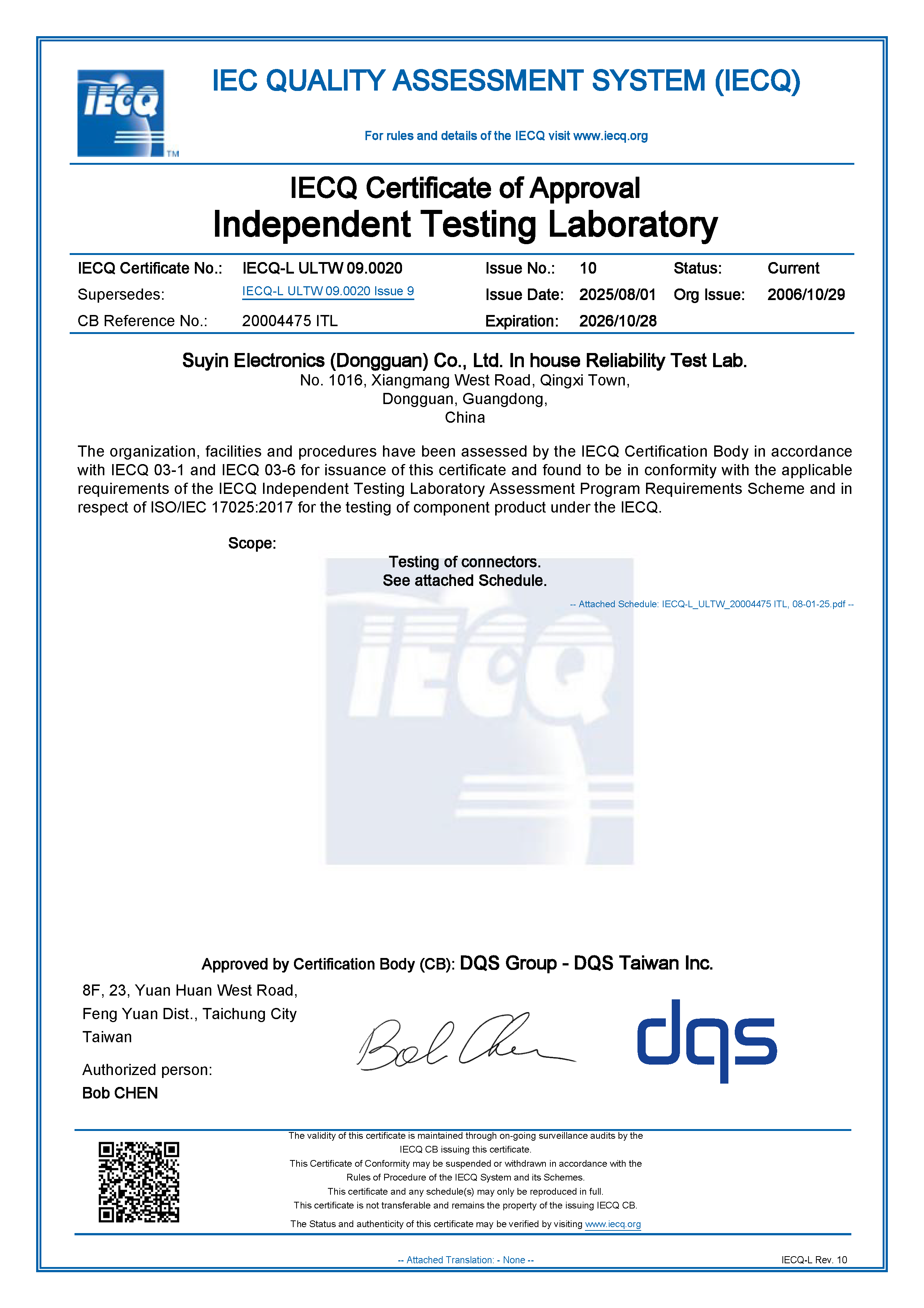 • Certified by IEQC-QC080000 Product Environmental Management System.